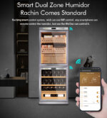 Dieser Kombischrank Wein Zigarren verwendet einen hochwertigen Markenkompressor und eine unkonventionelle Kühleinheit zur Vibrationsreduzierung, Betriebsgeräusche und schnelle Veränderungen, die eine wesentliche Eigenschaft und eine wichtige Sicherheit gegen Vibrationen und Temperaturschwankungen von Weinen und Zigarren darstellen, stark minimiert. In Kombination mit einem leisen Vibrationsdämpfungssystem und energieeffizienter Kompression kann der Schrank selbst in einer sehr ruhigen häuslichen oder Lounge-Umgebung arbeiten, ohne seine Umgebung zu stören.